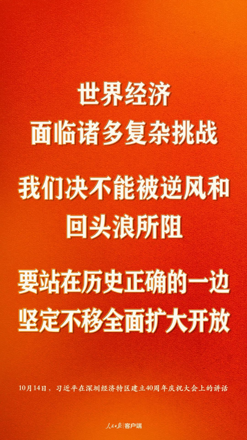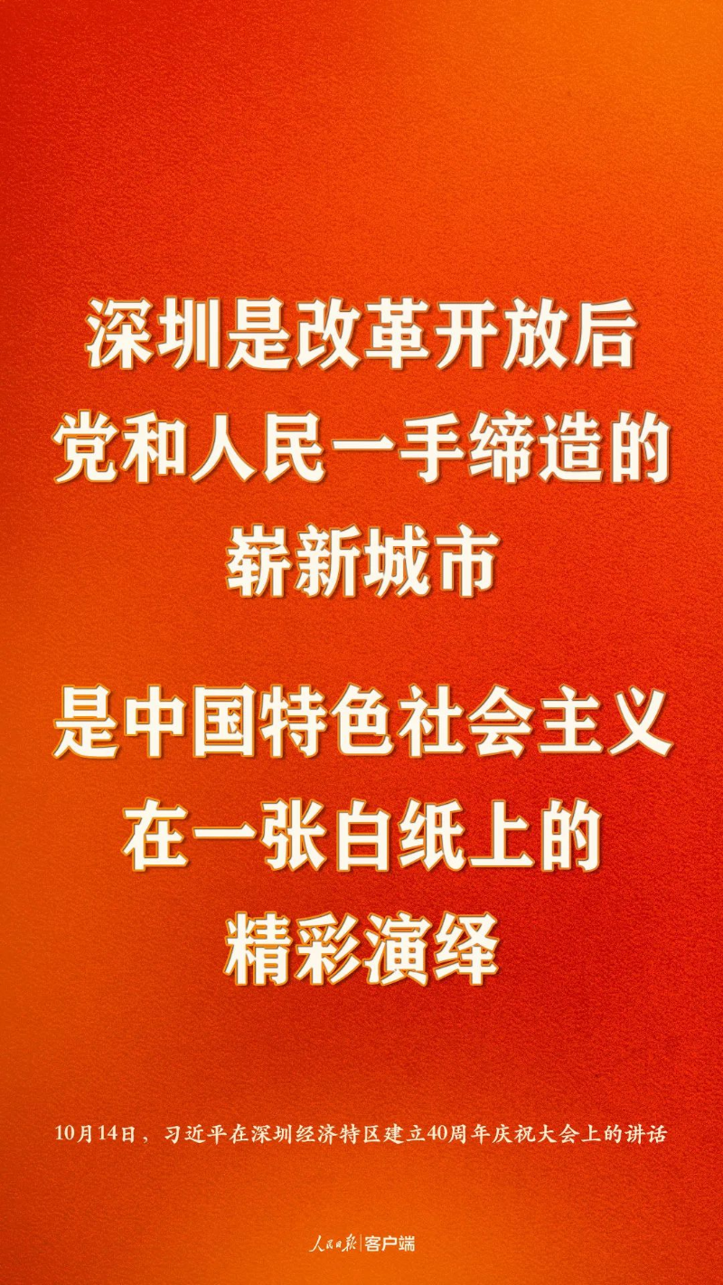 看似寻常最奇崛,成如容易却艰辛。深圳等经济特区一路走来,每一步都不是轻而易举的,每一步都付出了艰辛努力。深圳等经济特区改革发展事业取得的成就,是党中央坚强领导的结果,是广大干部群众开拓进取的结果,是全国人民和四面八方广泛支持的结果。在这里,我代表党中央、国务院和中央军委,向经济特区广大建设者,向所有为经济特区建设作出贡献的同志们,致以诚挚的问候!向各位来宾,向关心和支持经济特区建设的国内外各界人士,表示衷心的感谢!