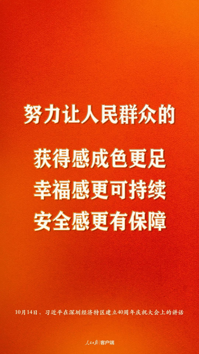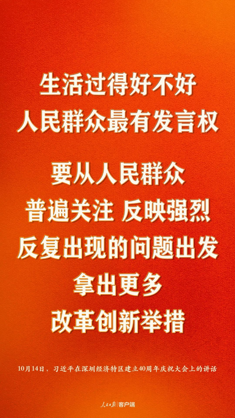生活过得好不好,人民群众最有发言权。要从人民群众普遍关注、反映强烈、反复出现的问题出发,拿出更多改革创新举措,把就业、教育、医疗、社保、住房、养老、食品安全、生态环境、社会治安等问题一个一个解决好,努力让人民群众的获得感成色更足、幸福感更可持续、安全感更有保障。要尊重人民群众首创精神,不断从人民群众中汲取经济特区发展的创新创造活力。要把提高发展平衡性放在重要位置,不断推动公共资源向基层延伸,构建优质均衡的公共服务体系,建成全覆盖可持续的社会保障体系。要毫不放松抓好常态化疫情防控,认真总结经验教训,举一反三补齐公共卫生短板。