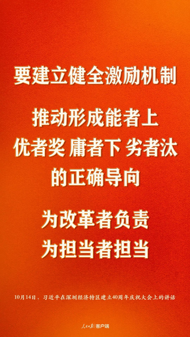 经济特区处于改革开放最前沿,加强党的全面领导和党的建设有着更高要求。要深入贯彻新时代党的建设总要求,以改革创新精神在加强党的全面领导和党的建设方面率先示范,扩大基层党的组织覆盖和工作覆盖。广大党员、干部要坚定理想信念、更新知识观念、掌握过硬本领,自觉站在党和国家大局上想问题、办事情。要建立健全激励机制,推动形成能者上、优者奖、庸者下、劣者汰的正确导向,为改革者负责、为担当者担当,激发党员、干部干事创业的热情和劲头。要持之以恒正风肃纪,坚定不移惩治腐败,坚决反对形式主义、官僚主义,营造风清气正的良好政治生态。