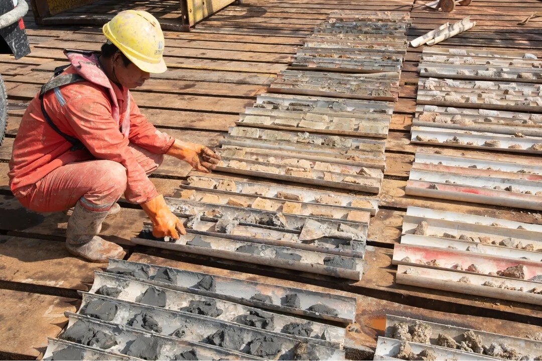 黄茅海跨海通道T5合同段项目副经理高骏介绍,黄茅海区域海底变化平缓,桩基施工过程中会经过淤泥、黏土、砾沙、强风化花岗岩、中风化花岗岩等地质层。桩基施工平均深度达到100米,施工难度在业内数一数二。为了高质量完成桩基施工,黄茅海跨海通道T5合同段项目部不惜成本引入国内先进的TR580旋挖钻机,极限深度可以达到110米,在每个主墩布置了3台。