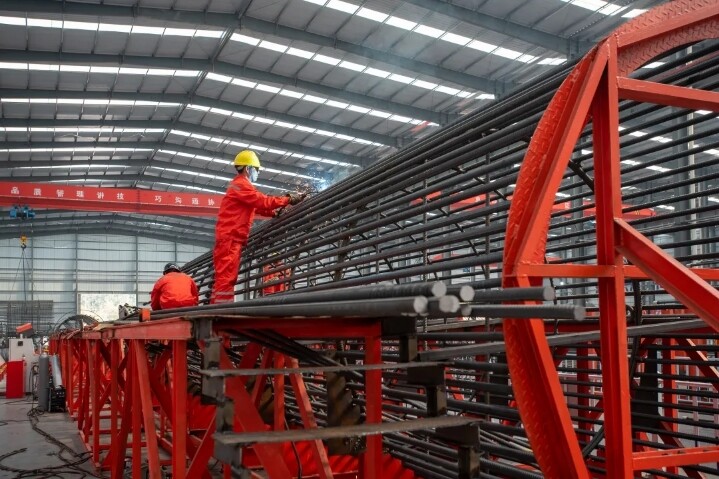 ▲在钢筋“智”造中心制作桩基的钢筋笼