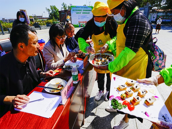 9支“侨乡巧厨娘”队伍依次展示完菜品后,由评委试吃,分别从菜品的摆盘、口味、菜式介绍、地方特色等方面对这些佳肴进行品鉴和评价。活动现场热情高涨,大家欢声笑语地互相品评,感受到了浓浓的节日氛围。经过评分,最终鲲鹏村获得此次美食比赛的一等奖,中兴村、靖安村和城北村获得二等奖,广海城社区、双龙村、团村村、环城社区和奇石村获得三等奖。