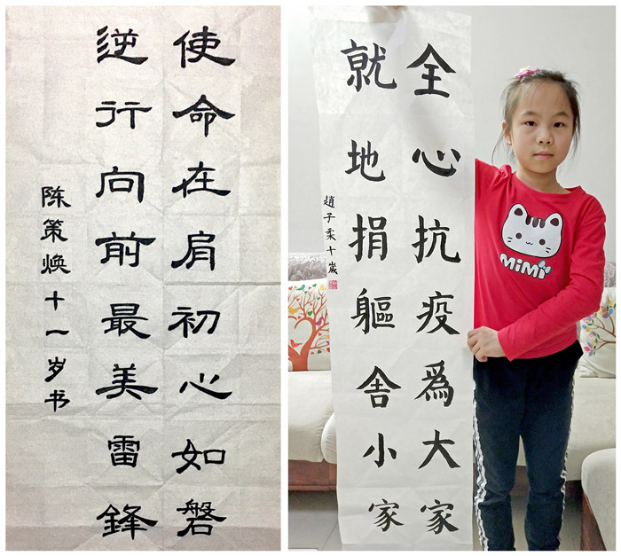 为了让学生知晓疫情,积极防控疫情,老师们把“疫情”当教材,教育引导学生以书法、绘画、手抄报、感谢信等形式,向奋战在抗疫一线的“逆行者”表达敬意,为他们加油鼓劲;在丰富美育教育内涵的同时,也凸显了美育价值,进一步增强线上美育教育的互动性、体验性,充分调动学生学习的积极性、参与性。