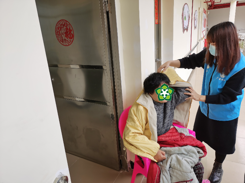 梁叔在住院治疗,治疗的同时还时刻担心着梁婶,让她一个人在家不放心。梁婶会经常到外面乱逛并且失去联系,再加上随时随地都会摔倒,总体状况堪忧,而且梁婶的一日三餐也是问题。我们向村委、镇政府全面反馈了情况。在多方努力下,虽然梁婶未达入住敬老院的年纪,但是特殊情况特殊处理,最终允许梁婶住进了敬老院,有护工照顾她,梁叔也可以安心治疗了。
