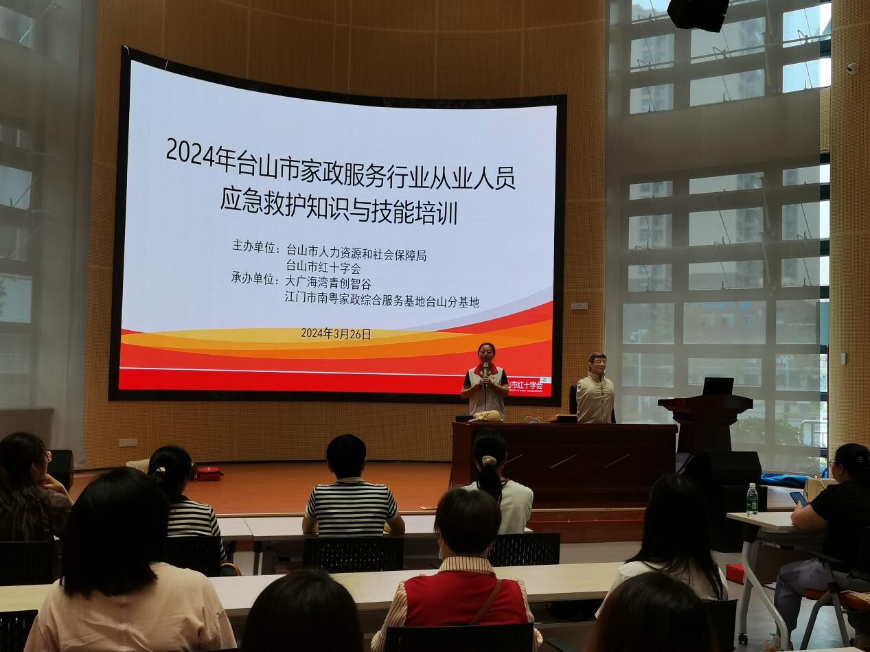 为切实提高家政服务人员突发事件应急救援能力和自救互救能力,3月26日下午,台山市人社局联合市红十字会在大广海湾青创智谷一楼会议厅举办2024年台山市家政服务行业从业人员应急救护知识和技能培训,60余名家政从业人员报名参加。