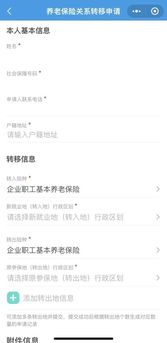 第一步:打开微信“电子社保卡”小程序并登陆,左上角地区选择“江门市”→在搜索框中输入“养老保险关系转移”并点击搜索→在“我要申请”模块根据个人实际情况点选相应险种的转移申请。