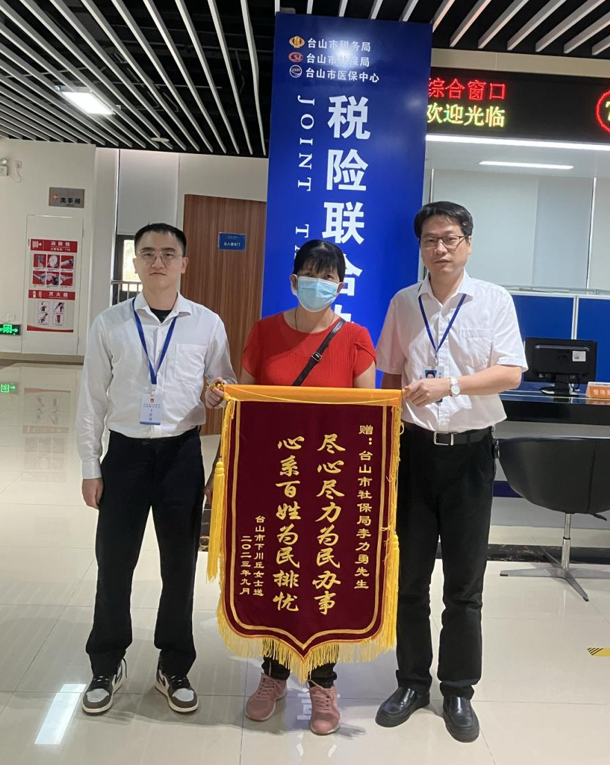 2023年9月,我市川岛镇丘女士将一面印有“心系百姓为民排忧,尽心尽力为民办事”的锦旗送到市社保局,感谢工作人员的贴心暖心服务,为丘女士顺利办理养老保险补缴和退休手续。