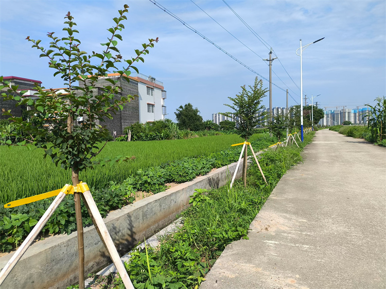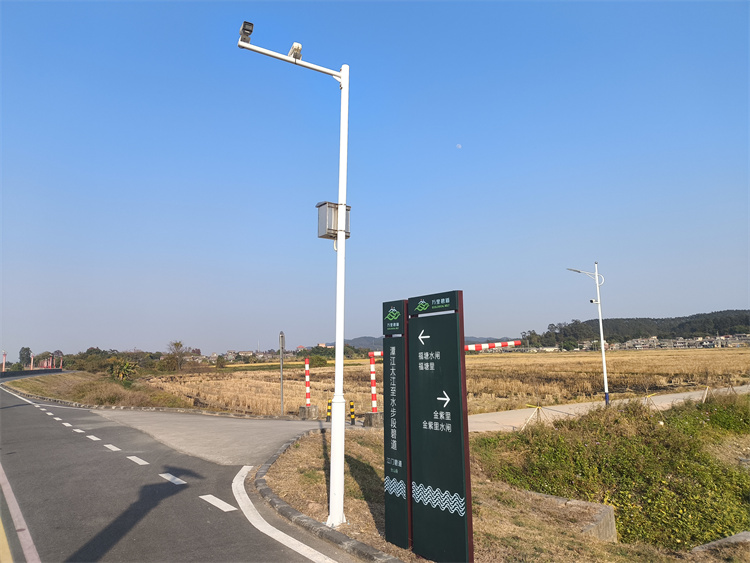 “生态宜居”除了生态环境优美,生活便利丰富外,日常公共安全也是重要方面。荔枝塘短坑涌道路作为绿化景观路的同时,也是承接潭江碧道的重要道路。为此,荔枝塘村委会规划出2.5万余元用于短坑涌道路安装平安监控,保障了村民的日常出行安全。配合起2023年“百千万工程”重点项目中的潭江碧道亮化工作,让村民在夜晚也能漫步在景观路和碧道上,享受晚风的吹拂与鲜花的洗礼。