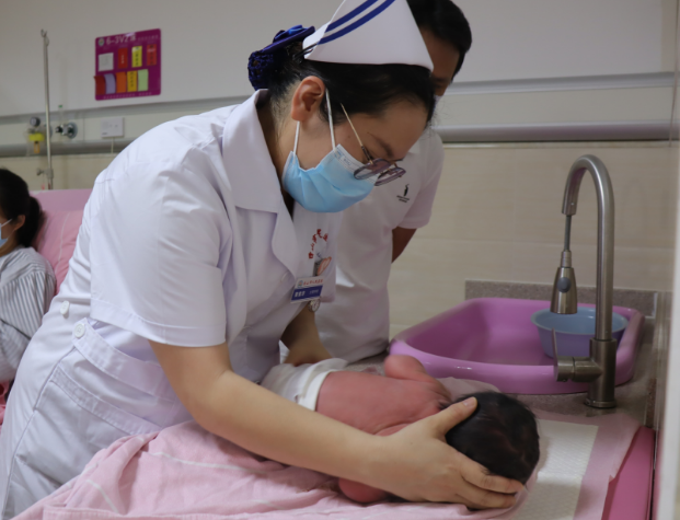 晚上8时,台山市妇幼保健院的产房大门被推开,助产士潘剑荷面带笑容走出来,向在门外等候的产妇家属一一道喜,祝贺新生命健康到来:“母子平安!”