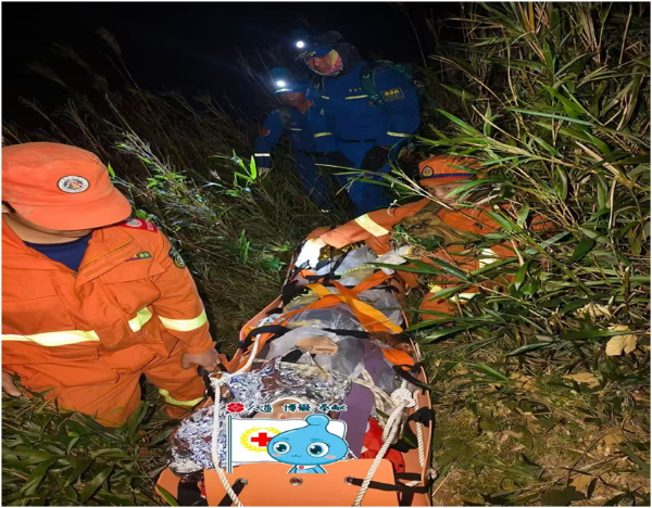 夜色下,救援人员用手电筒照亮山路,用双手稳稳托举医疗担架转运伤者,一边清理沿路杂草碎石开辟救援黄金通道,一边采取人员接力转运的方式,在医护人员全程护送下,历时将近10小时终于在11月6日上午8时18分成功将伤者转运到前线指挥部,整体生命体征平稳。同时根据伤者家属意愿,第一时间转送遵义医科大学第五附属(珠海)医院(斗门区人民医院)进行救治。