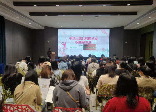 邀请广东洲斌律师事务所邝冬兰律师为我局开展《中华人民共和国妇女权益保障法》宣讲。邝律师主要从修订要点和条文两点两方面介绍了这部法律,引导女职工尊法学法守法用法,不断提高依法维护自身权益的意识和能力。