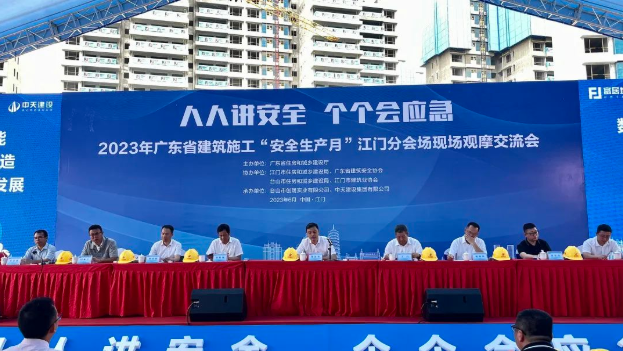 6月15日上午,2023年广东省建筑施工“安全生产月”江门分会场现场观摩交流会暨江门市第二季度质量安全工作会议在江门富居·禧公馆项目举行。