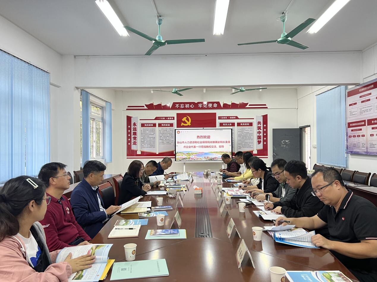 肖雄英副局长向江西理工大学党委书记杨斌一行介绍台山产业发展、就业创业政策等情况