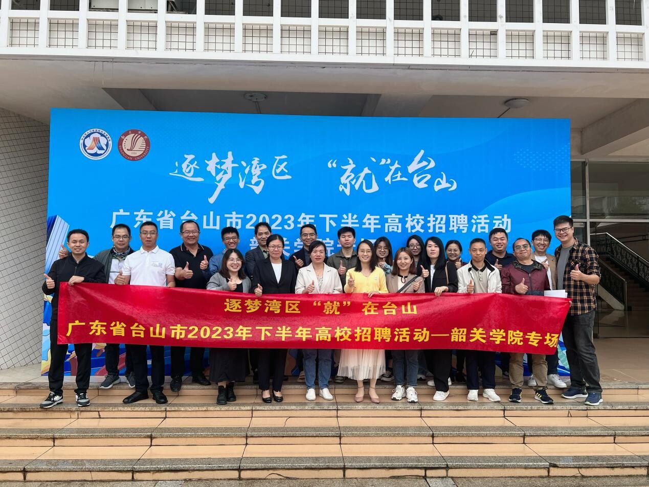 ‘就’在台山”赴外地高校招聘活动。在韶关学院招聘活动的同时还开展校企对接合作座谈,政校企三方围绕企业人才需求、高校毕业生就业以及企业研究项目等方面开展交流。韶关学院的领导,市人社局肖雄英副局长,市人社局专技股、市就业服务管理中心、全国博士后创新(江门)示范中心台山分中心负责同志以及台山企业代表出席政校企合作、人才对接座谈会。