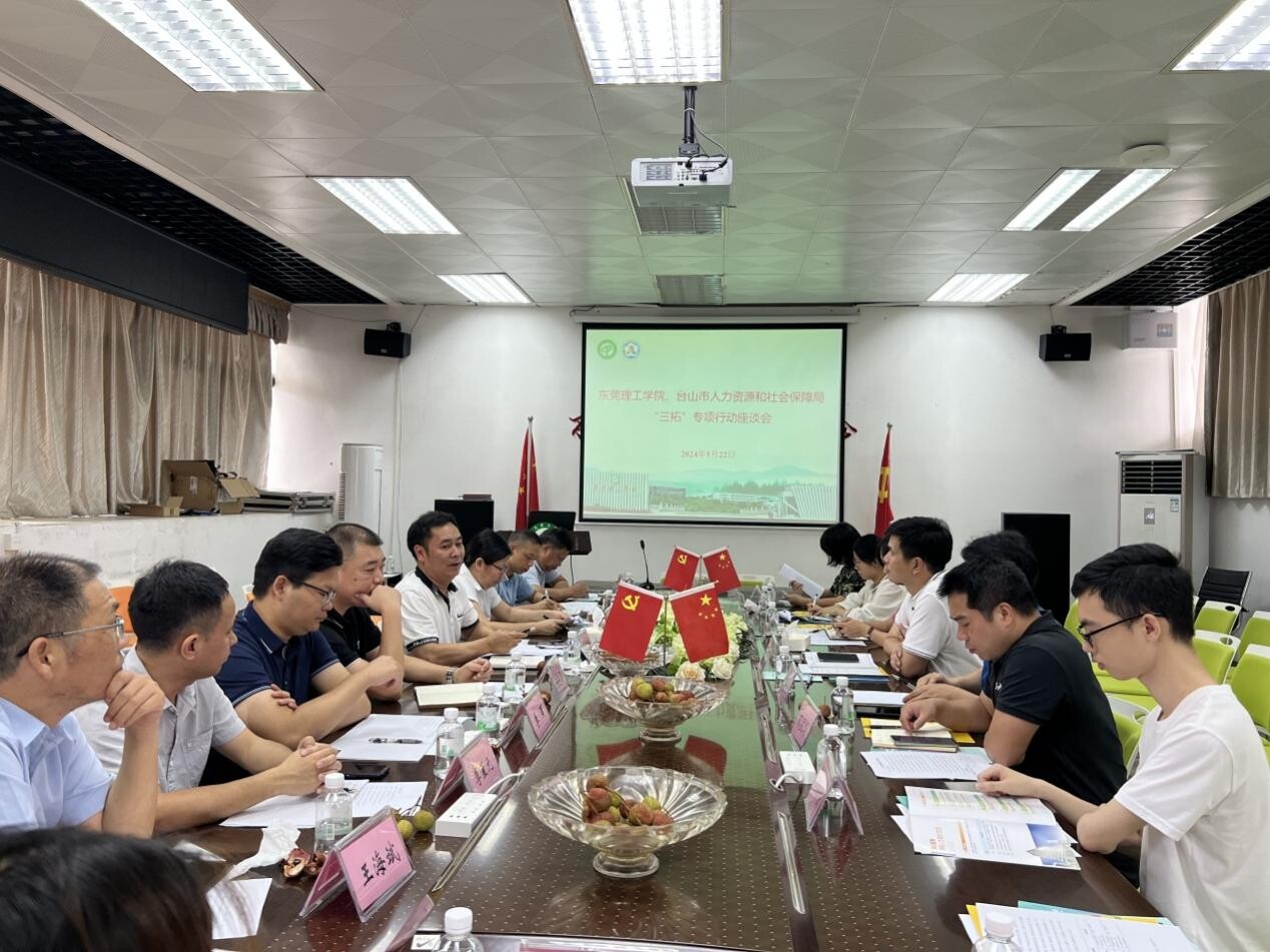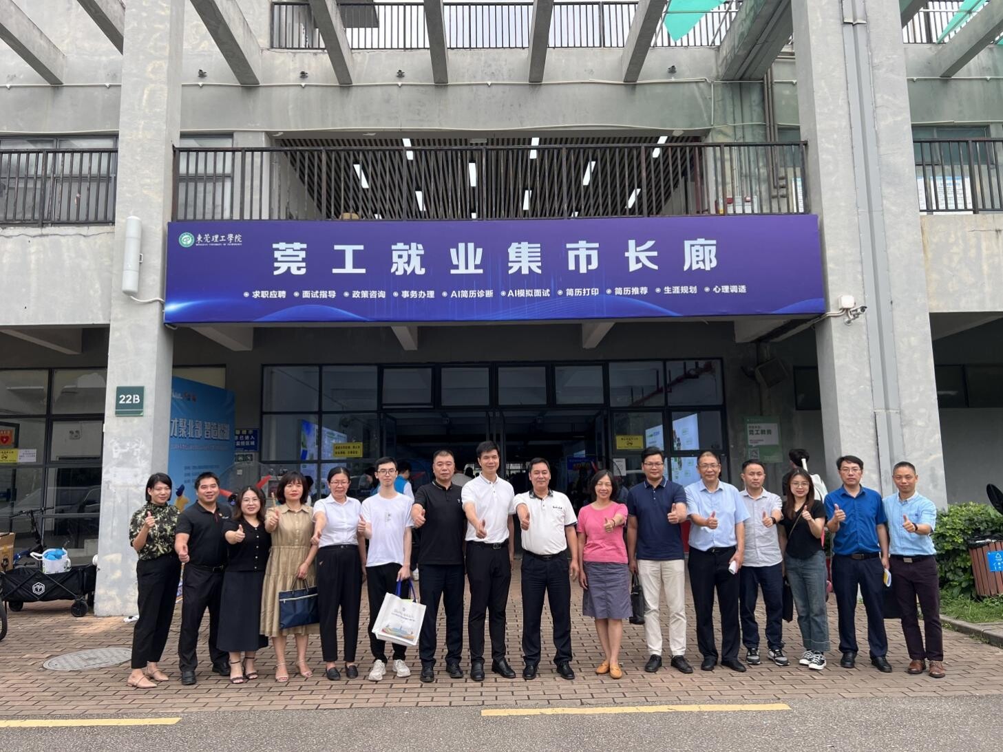 22日下午,台山市人社局、市技工学校、台山重点企业代表一行前往东莞理工学院松山湖校区走访,参观了莞工就业集市长廊招聘会现场,与校方就“三拓”行动开展专项座谈。