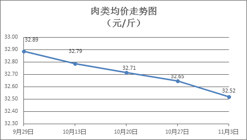 据本市21家农贸市场监测数据显示,上周(10月28日至11月3日)市场上各类“菜篮子”商品供应充足,所监测的7大类“菜篮子”商品价格总体表现为2涨3跌2平。其中:粮油类商品价格保持平稳,禽蛋类、水产类商品价格有所上涨,肉类、蔬菜类、水果类商品价格有所下降。本周天气晴好, 应季蔬菜供应持续稳定,我市蔬菜类商品价格呈持续下降态势,目前正处于消费淡季,预计部分肉菜类商品价格或持续回调。