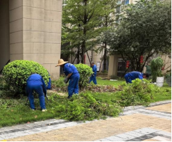 △台山万达广场小区修剪绿化带,减少蚊虫藏匿空间