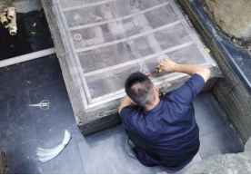 △台山东方名成小区开展孳生地清理,为下水井加装防蚊纱网