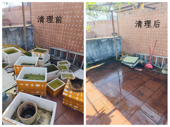 连日来,市人社局全体党员干部带上清洁工具,深入社区背街小巷、房前屋后、天台的卫生死角,重点清理各类积存垃圾、废弃容器、塑料薄膜等易积水点位,从源头上铲除蚊虫孳生土壤。针对巡查发现的公共区域小型积水,及时进行清理;对于难以立即清除的大型积水或卫生难题,则详细记录并协调社区、物业等部门限时整改。