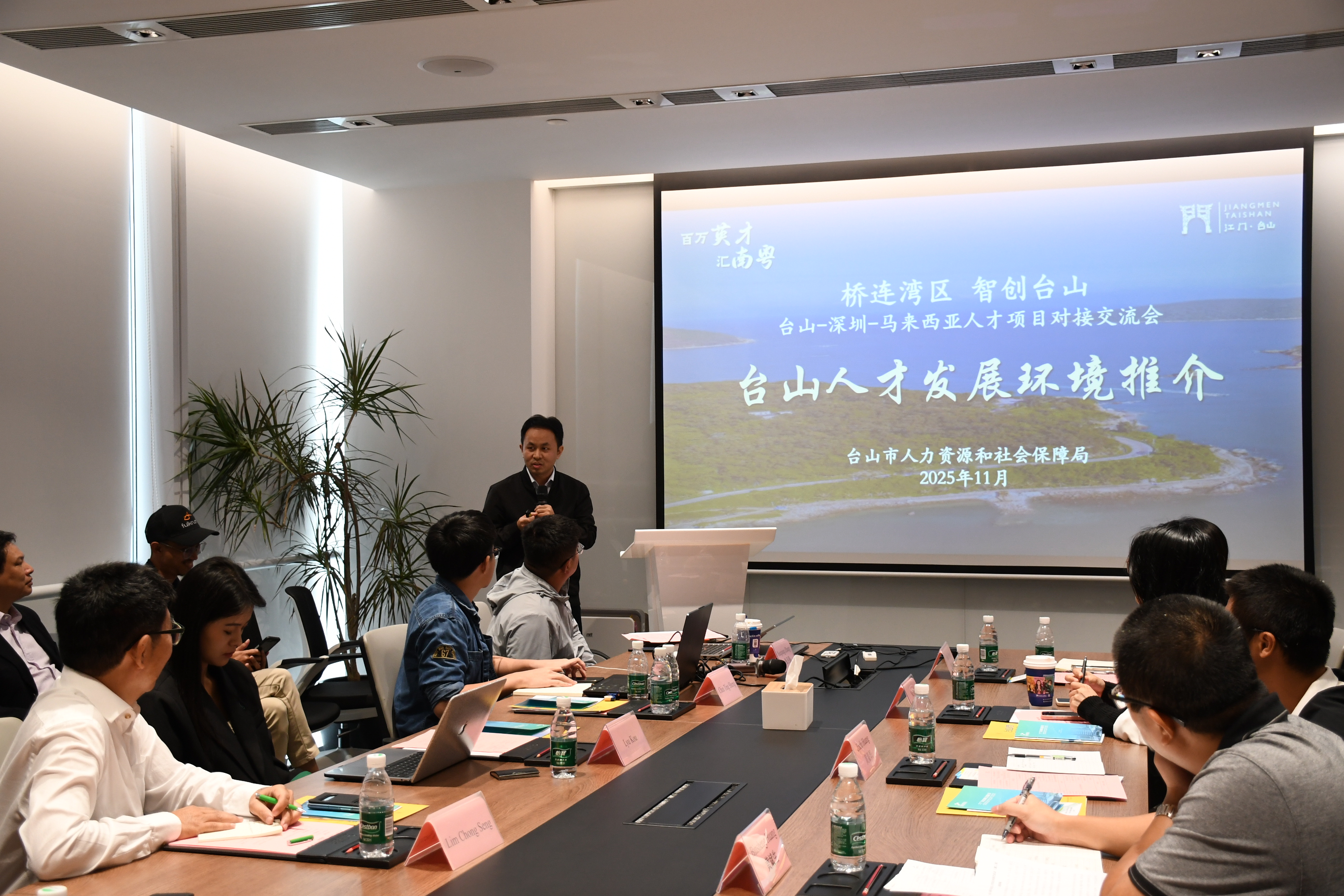 为充分发挥大广海湾青创智谷深圳、泰国孵化中心的辐射对接作用,11月11日,台山市人社局与马来西亚数码槟城在深圳联合举办“桥连湾区·智创台山”人才项目对接交流会。台山市人社局党组成员、副局长黄斌生,马来西亚数码槟城生态系统发展总监林冲成,以及来自深圳、台山与马来西亚三地的合作机构代表和青年创业者近40人参加活动。