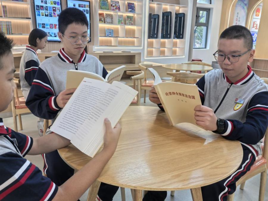 本次“青春向阳 法伴成长”学习宣传贯彻习近平法治思想系列活动是习近平法治思想在台山市落地生根的缩影。活动现场,讲解员通过长卷投影的形式,为同学们展示我国上下五千年的法治进程,法的起源、法的演变、主要的法治人物、法治思想;结合短片播放,实物展示,人机交互等多种方式,展示未成年人权利义务,吸食毒品、网络犯罪、校园霸凌、性侵的危害及法律后果等法律知识;创新运用VR设备体验模拟法庭,帮助学生沉浸式学习法律知识,感受神圣庄严的法庭现场。随后,同学们主动来到法治阅读书吧阅读习近平法治思想相关著作,一位小同学阅读后还在留言板上写下“很高兴到这里学习法律知识”。这一场景充分体现了台山市习近平法治思想学习宣传阵地建设的成效——通过精准化、场景化的法治学习宣传活动,准确定位未成年人法治教育,以“小切口”激发学生法治学习兴趣,从传播法律知识上升到培养法律思维、理念,切实提升了未成年人的法治观念,帮助未成年人有效防范法律风险,同时也为未成年人健康成长筑牢了法治根基。