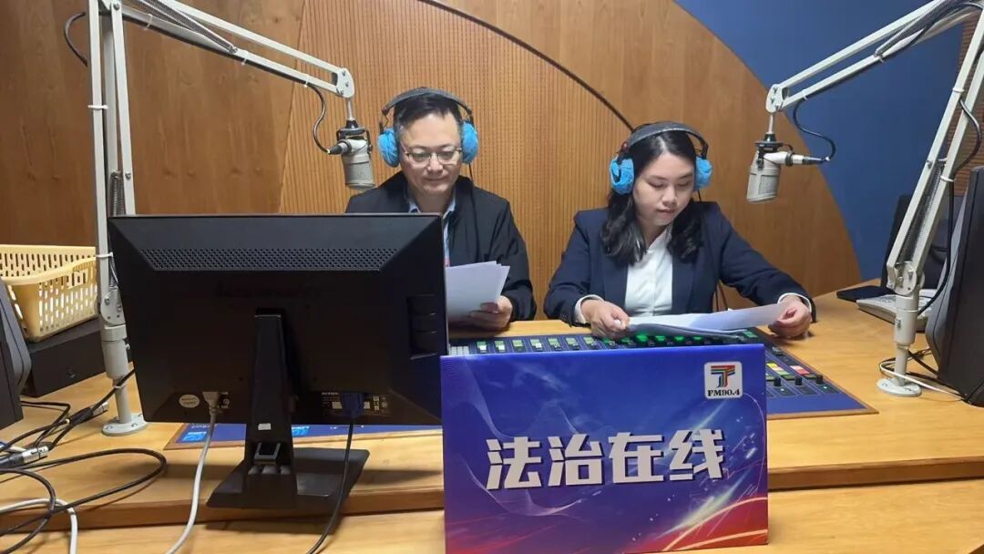 宪法进网络:依托数字平台打造“指尖普法阵地”,提升宪法宣传传播力。市普法办、市司法局和市融媒体中心邀请广东歌法律师事务所伍晓莹律师和广东时通律师事务所周丽律师参与台山电台《法治在线》广播栏目录制,在线宣传解读宪法和法治宣传教育法等法律法规。国家统计局台山调查队通过企信通平台向全体干部职工、辅助调查员、调查对象精准推送国家宪法日专题短信。市科工商务局在企业群发送法治宣传周海报、宪法宣传周答题链接进行法治宣传。各部门单位充分利用微信公众号、网页等,通过图解、动漫、短视频等形式加大网上宣传力度,并利用LED显示屏滚动播放宣传标语,营造浓厚的宪法宣传氛围。