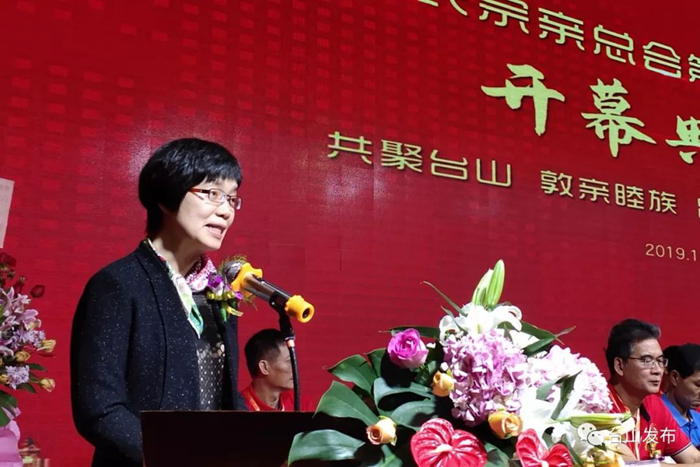 市委常委、统战部部长李白云对大会的召开表示祝贺,她对台山籍伍氏乡亲长期致力于社会公益慈善事业,为台山经济社会建设、祖国和平统一作出的积极贡献表示感谢。她向大会介绍了台山经济社会的发展情况,并表示,台山正迎来粤港澳大湾区建设的重大发展机遇,作为珠江西岸新增长极的重心、沿海经济带江海门户的前沿,台山将围绕“港澳所需、湾区所向、台山所能”,融入粤港澳大湾区建设中,希望海外乡亲经常回乡探亲访友,共商发展机遇。(来源:新宁杂志社 白桦)