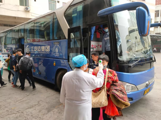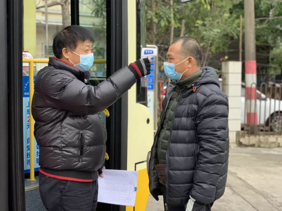台山公共汽车分公司副经理周宁达:我们节前已经对所有员工进行排查,是否有员工从疫区回来,或者有疫区的亲戚朋友过来探亲的,进行一次排查,确保没有方可上班。第二,一线员工上班前,要进行体温测试,并要求佩戴口罩。为确保市民的出行,我们公交公司已经优化线路,并对车辆进行消毒,确保乘客出行安全放心。
