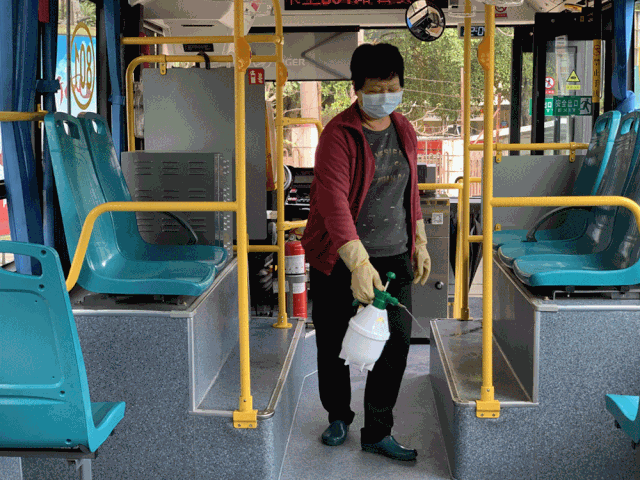 为积极做好疫情防控工作,台山公共汽车分公司设立公交车日消毒制度,每天安排专人,定时对所有上线运营车辆进行全面彻底消毒,重点对坐椅、扶手杆、地面、投币箱、刷卡设备等部位清洗消毒,对途经人流密集区域的公交车辆增加消毒频次,确保做到“无死角”“全覆盖”。驾驶员要保持车厢内空气流通,并对广大乘客进行安全防范提示,对没戴口罩的乘车人员进行劝离。