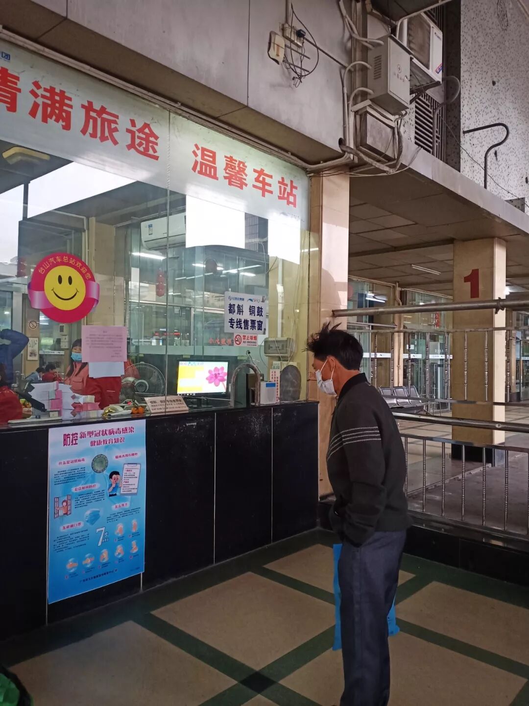 今天上午,记者来到台城南门车站,看到站内等候乘车的市民很少,车站工作人员正在对车辆和站场进行卫生消毒。