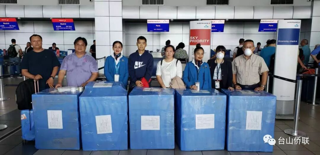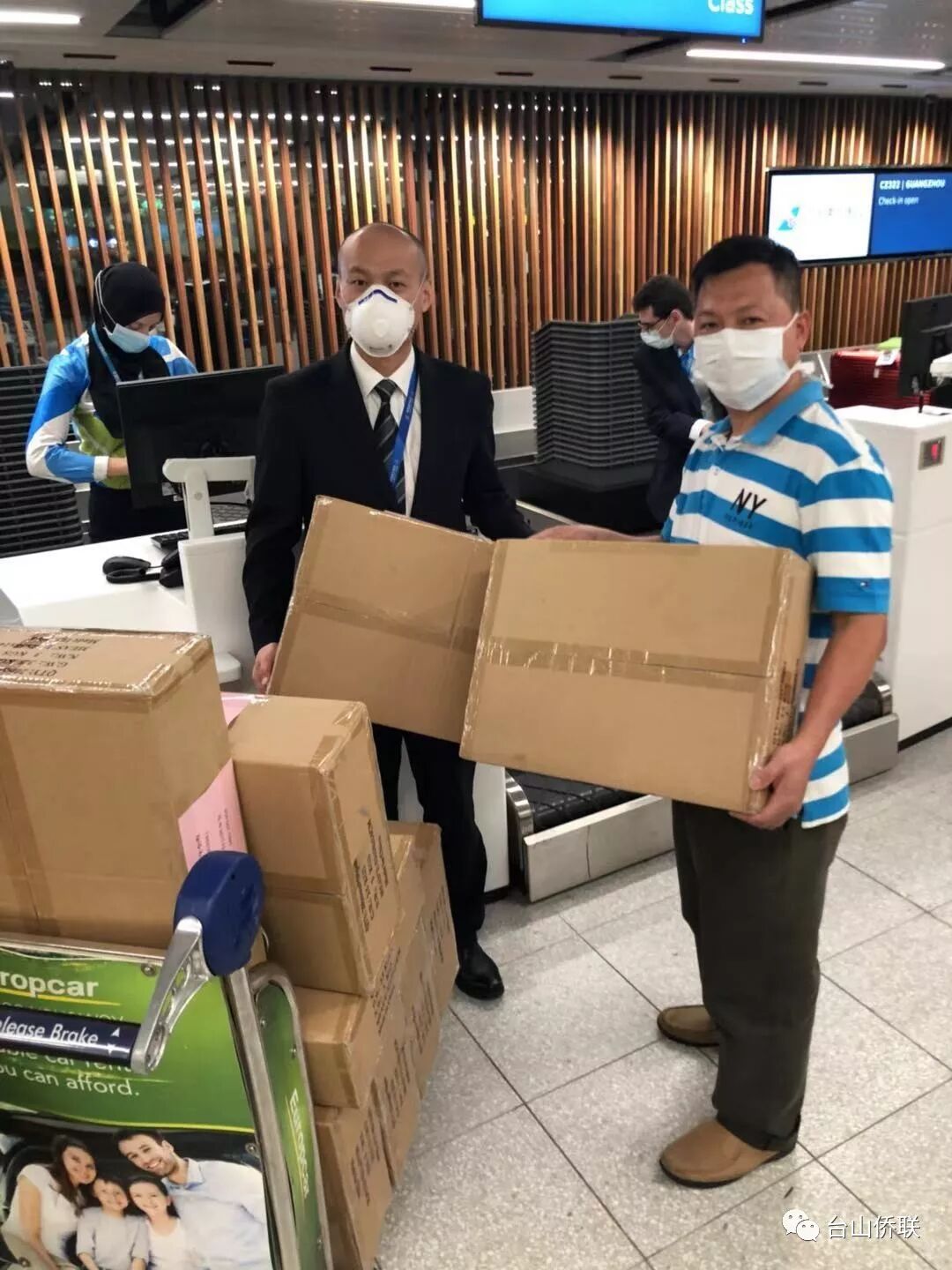 得知家乡防疫物资短缺的情况后,台山市侨联荣誉主席陈文添当即组建了相关微信群,动员侨胞出钱出力、募集医疗物资。1月29日,巴西江门五邑青年联合会副会长谭子超“人肉”带货,带着几大箱口罩从巴西辗转30个小时回到台山。 “当时,圣保罗中心城区的药房已经买不到口罩了,我们就开车到周边县城买,还有同胞驱车400多公里从里约热内卢送口罩过来。”谭子超说,“药店的存货不多,乡亲们都是十个、二十个这样凑起来的。”仅用两天时间,首批口罩便已“集结”完毕。1月29日,经过长时间飞行后,谭子超带着口罩抵达广州市白云机场,来不及休息,马不停蹄赶回台山,将一箱箱口罩“人肉”带回家乡。 中墨友好促进会秘书长、台山市侨联海外委员梁绮梅通过联系墨西哥蒂华纳市市长秘书,争取得到当地市政府及有关部门的大力支持,迅速查清这次抗疫急需的医疗物资资源,经过16小时的紧张调度,由当时在墨西哥的台山市侨联海外委员鞠凤兰、伍柱钧将抗疫医疗用品运回国内。市侨联荣誉主席陈荣濂先生在泰国旅行四处抢购口罩,亲自带回家乡。还有大批侨胞在海外通过各种方式采购防护物品和筹集资金以最快的途径送回家乡,助家乡台山打好防疫战。