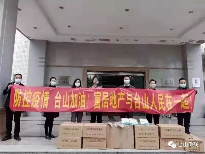 此外,许多侨资企业纷纷积极响应。台山市侨联常委方长明先生在了解到我市防护物资紧缺的情况后,其企业富居地产公司主动迅速与省内外生产厂家联系,购置大批口罩、防护服等防疫物资,捐赠给相关部门单位,并向我市环卫、城管、园林绿化等户外一线人员捐赠口罩,为台山疫情防控尽一份力。