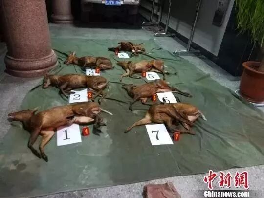 资料图:被查获的7只黄麂死体。 景谷县森林公安局供图