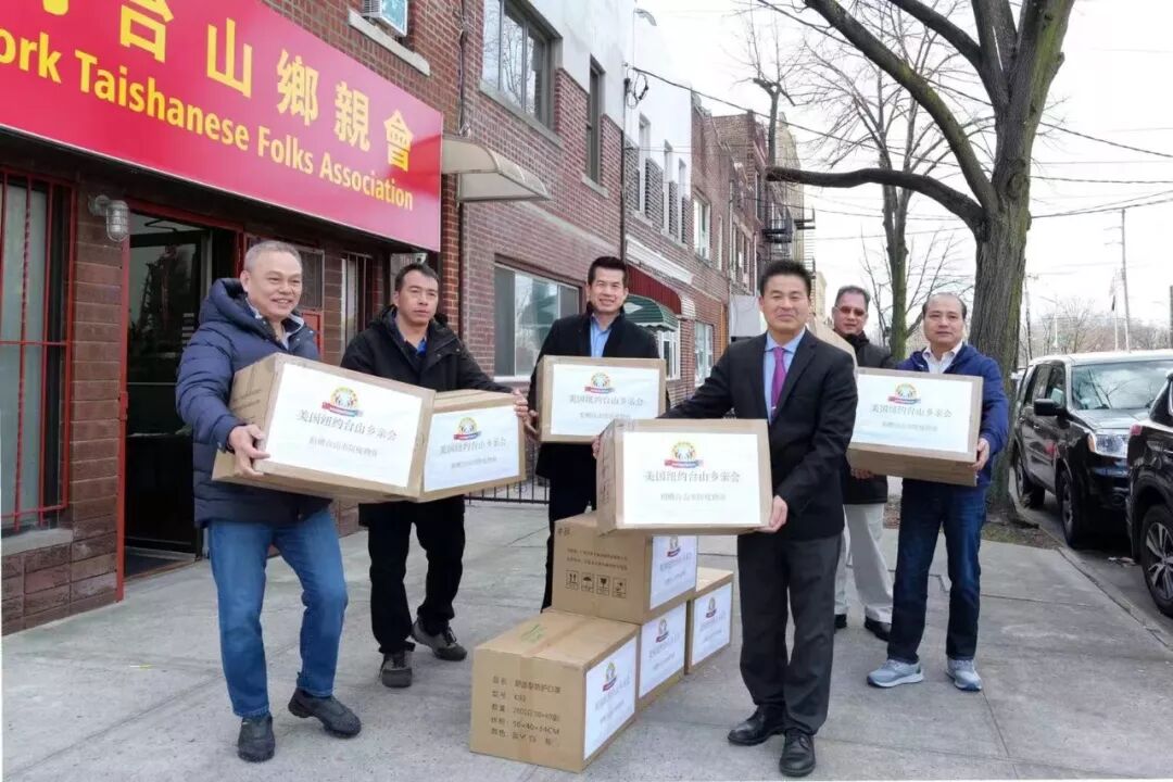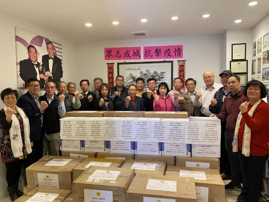 纽约台山联谊会、纽约广府人总会、美国台山总商会、华人慈爱基金总会、端中爱心奖学基金会、美国都斛同乡总会、纽约白沙同乡会、纽约陈氏提领同乡会、美国斗山同乡总会、纽约美东广海同乡会、黄金集团、端芬成务校友会、美东台山一中校友会、纽约四九中学校友会、芝加哥梅冠玉家族基金会、纽约台山侨胞妇女联合会等纽约华人社团共同举办这次捐款和购买医疗防疫物资交接仪式。