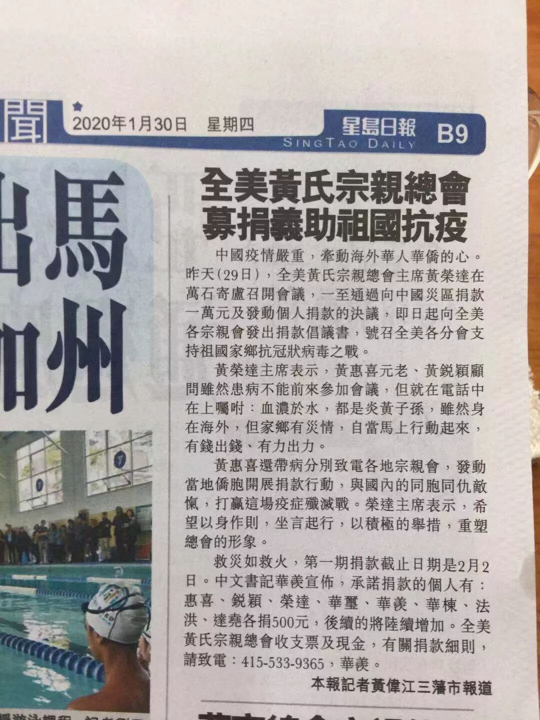 1月29日举行的会议上,黄荣达向大家告知和传达了家乡抗疫情况和需求,并带头认捐,得到全美黄氏宗亲总会众人的支持和响应,即日向全美各宗亲总会发出捐款倡议书,并致电各地宗亲会,发动当地侨胞开展捐款行动,与国内的同胞一起打赢这场抗疫战。