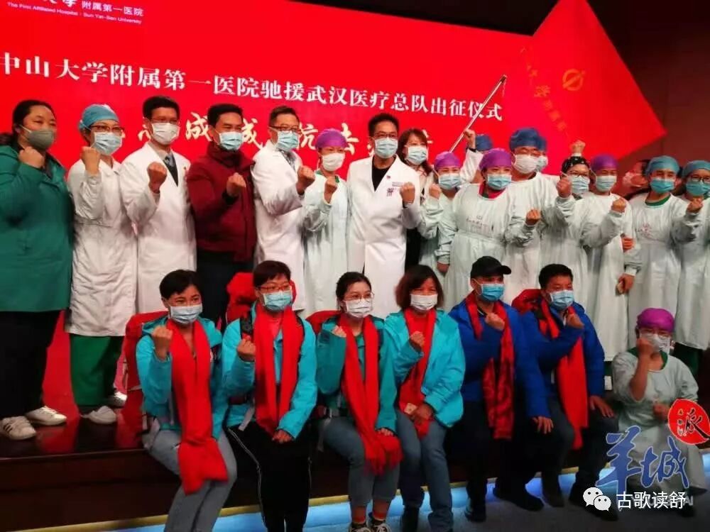 这样的士气,这样的队伍,正是当年我关羽所忽略的,否则哪轮到吕蒙这厮…… 关二哥呀,你可知道,这次规模甚大的前后两批荆州援兵团,战士来自全广东最坚实的力量。 从2月10日第一批的108位“白衣战士”的集结,到紧接着第二天再出发的247位逆行勇士,两天实现支援全覆盖。 其中,第一批勇士主要来自除夕夜刷遍全地球之“千人请战书”背后的南方医院,为85人,再度震撼人心! 南方医院党委书记朱宏亲自带队,任此次援助荆州的广东队前方副总指挥。 朱宏书记更是在出发仪式上宣读誓言:再度披甲赴荆楚,不灭“新冠”终不还! 让我想起了传颂千古的“黄沙百战穿金甲,不破楼兰终不还”之豪言壮语! 前方总指挥为广东卫健委党组副书记黄飞,黄书记对荆州疫情作科学研判后,果断作出了首批队伍先下沉到尤为严重的县级市洪湖市的援助。 2月12日凌晨,集结广东省属委属医疗卫生机构及15个地市共247人的第二批支援荆州医疗队抵达。根据前方指挥部的部署,结合荆州市全市状况,精准对接各地“缺口”,科学分配人员力量进行援助。 所有人员经上午培训后马不停地奔赴各地开展救助工作。 其中238名队员分赴各地,指挥部派出1名领队率队下沉。 派驻荆州市中心医院的医疗组由南方医科大学第五附属医院的9人组成; 派驻荆州市第一人民医院的队员由韶关市(16人)和广州市(5人)的21人医疗团队组成; 派驻荆州市第三人民医院的医疗队由韶关市的2名队员负责; 派驻松滋市的队员由中山市(15人)、肇庆市(19人)及广东药科大学附属第一医院(3人)的医疗团队37人组成; 派驻公安县的队员,则是来自江门市(13人)、梅州市(17人)、云浮市(12人)一共38人的医疗团队组成; 派驻石首市的队员,来自湛江市(17人)、潮州市(15人)、河源市(17人)医疗团队组成,一共53人; 派驻监利县的则是来自珠海市(16人)、阳江市(16人)、清远市(16人)的48人医疗团队。 在队员们出发前,发生了动人一幕,广东援助荆州医疗队前方总指挥黄飞为大家深情勉励,一番平凡话语道出了广东队的不平凡。 “我们召之即来,来之能战,战之能胜,我们是勇敢的队伍,大家要勇往直前,同时要确保安全。疫情就是命令,时间就是生命,我们要争分夺秒,为控制疫情、救治病人争取最宝贵的时间。我们都是战士,我们代表广东风格、代表广东水平、带着广东爱心奔赴前线。” 队员们为之动容大受鼓舞,高呼:“荆州加油!湖北加油!中国加油!” 就在刚刚,今天下午,又一支来自广东佛山的“飞虎队”出现,320人的医疗队包机飞赴武汉!黄飞鸿故乡、叶问故乡…… 这个集结力量奔赴兄弟省市支援,新中国成立以来,想必首次,悬壶济世淋漓尽致! 这其中,除了南方医,在整个对湖北支援队伍中,规模最大的为中山大学各附属医院,从一院到六院,超过了500人的医护阵容,被全国网友誉为“无敌中山医”! 对于武汉人民,对于荆州人民,想必定是一股暖心之流,连广东人自己看了,都觉得是强心之剂,羡慕得不要不要…… 毕竟,此时得知荆州人民更需要呵护我们生命与健康的白衣天使,也为广东的强大力量倍感骄傲与幸福! 武汉胜利,就是湖北胜利,湖北胜利就是全国胜利。低调务实更有着大爱义举的广东人而言,都很想对湖北人民、荆州人民说声:毋用使惊(别害怕)! 我们广东白衣战士豪华团借你一用,“不用人情不用利息”,只要让他们健健康康凯旋归来便是…… 曾经,有篇刷屏的文章叫“我不敢看武汉人的朋友圈”,今天我可以告诉你,我不敢看“广东队的医疗日记”,每次看每次泪,说不怕是假的,但那种“向死而生”的精神至今回荡。 医护人员中,女性剪断长发,剪断头发那一刻发出的声音,姑娘们自嘲这是心碎的声音。 男性剃成平头光头,胡国栋医师更是表示:疫情不除,头发不留 每天全身包裹严实防护服,8小时不喝水不进食,小便用尿不湿,脱下防护服全身湿透; 护士多为90后身影,“非典时,我们是孩子,现在长大了,轮到我们守护你们的时候了……” 来自广州中山三院的内科ICU护士朱海秀是首批援助湖北的最年轻队员,97年的她来武汉前不敢告诉父母,在前线日记中写下:“虽然我也怕,我还没看够祖国的大好山河,还未实现带父母旅行的诺言,但于国家,我是名党员,要勇敢、敢奉献。于医护人员,救护病人是我的职责。无论什么身份,我们都是中国人。” 中山三院队友张晓玲为朱海秀在防护服上画了个带笑脸的太阳 来自高州市人民医院的黄燕,与另9名护士战斗在武汉金银潭医院,10人中分别来自揭阳的普宁市人民医院及茂名的高州市人民医院。7人为90后,最小的仅23岁,被病患们亲切称为“广东十朵金花”。 在汉口医院,来自广州中山六院的外科护长刘爱红和医疗队一行16人,仅在一个早班就为患者换了近两百个液体瓶,加药、输液连口气都不敢喘。护士们身兼数职,既是护士、护工,还是清洁工,这还不算,最最重要的是,用自己强大的内心给患者做起了心理咨询师,安抚与鼓励,希望与坚毅,成了助力患者自身战胜疫情的良药。 姚麟,广州中山六院副院长,作为广东省第二批支援湖北医疗队队长,事无巨细,亲自为队员们挂衣服的钉子,化身全能战士,“钉子”精神突显。 2月8日,元宵节,武汉的汉口医院,广东队接管的两个病区,共有30名患者出院。他们终可在这天与家人团聚,而医疗队员们却一如既往继续战斗。出院时,有人激动地说,这一次真的使死里逃生。 
