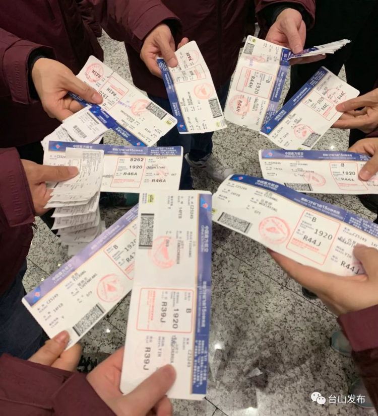13号早上接收到任务,14号中午紧急出发,虽有不舍,但一路上队员们更多地表现出相互关照、团结,还有一定能平安归来,战胜疫情的信心。下午到达白云机场,办好行李托运,会合大部队。我们是广东援助荆州应对新冠肺炎疫情第三批(援助湖北第十五批),台山市首批支援湖北医疗队队员。我相信,我们每个人手上握着的由广州飞往宜昌的机票,就是我们通往胜利的通行证。20:00上机出发,在机上,乘务人员也为我们准备了国旗,为我们加油!荆州加油!湖北加油!中国加油!