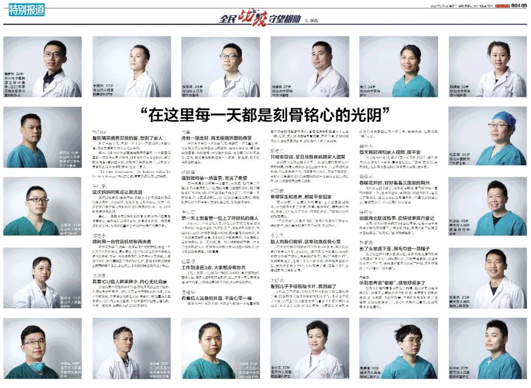 3月2日   真正战场上弥漫的是硝烟味,而我们的战场满是酒精味。平时经过半污染区或者手消,到处都是酒精味道,有时还呛鼻。有队员曾开玩笑地说,出来支援,感觉天天都在“喝酒”,甚至我们有两位同事的手机都因为“酒精中毒”而失灵了。但我们知道,有这酒精味的战场,我们可以安全地救治患者。   今天休息,休息是保持战斗力最有效的方法。远离酒精的味道,可心依旧在战场上。战士上战场,首先是要擦亮自己的那把枪,而我的战斗武器是专业知识,通过影像学的征象解读给临床治疗提供建议。我要擦亮武器,就是要通过不断学习来充足自己的弹药库。   新冠肺炎的CT征象是最近这段时间看得比较多的资料,今天特别学习了《急性呼吸窘迫综合征COVID-19的临床病例个案报告》,从病理的层面理解新冠肺炎胸部CT上的一些征象表现,更好地做出鉴别诊断。    今天晚上比较特别,收到荆州抗疫指挥部的通知,我们台山队里志忠和夏樱准备明日到荆州市一院的重症医学区支援。全荆州的重病号都在那里聚集,非常险恶,跟他们聊了一会,他们信心百倍:“黄沙百战穿金甲,不破新冠终不还”。我相信他们一定能克服一切困难,尽快归队!志忠加油!夏樱加油!荆州加油! 3月3日,南方都市报推出特别报道 《全民战疫 守望相助之面孔》 报道了江门援鄂医疗队 在石首中医院的所见所闻和心路历程 我们节选了台山医疗队的报道内容 来看看他们有什么想说的 甄新现 看到隔离病房男孩的画,想到了家人   到石首第十天,看到一个十岁小男孩的画,让我知道,选择支援湖北的决定是正确的。   那天,我和大队长到普通隔离病房查房,一个戴着口罩的小男孩在认真地画画,画里有他日夜挂念的家、爱玩的小汽车,看到这一切,我和大队长都沉默了,我想到了养育哺乳我30多年的家乡,想到了家人。   “To Cure Sometimes, To Relieve Often, To Comfort Always.”有时去治愈;常常去帮助;总是去安慰。 陈伟棠 这次妈妈的焦虑让我流泪   这次出征湖北,任务紧急,在路上才打电话告诉爸妈我要去荆州。从小到大,妈妈对我是各种放心,我第一次远离家门跨省读大学妈妈也表现得很淡定。这一次,妈妈的焦虑让我流泪。   最近,一名使用有创呼吸机的新冠肺炎危重症患者拔管成功,由危重症减轻为重症。这是荆州市第一例拔管成功的患者,为后续危重症患者的治疗提供宝贵经验。 郑志忠 顺利用一台转运机转移两患者   在老师指导下,我第一次在实战中穿防护服。穿过一个约九平方米的缓冲区,直达病区,我们的重点是转移两名机械通气的患者。只有一台转运呼吸机,为了避免交叉感染,先备好呼吸机,在球囊辅助下转运较轻患者,再用呼吸机支持转运较重的那个患者。幸运的是,我们顺利完成了转运。 杨俊伟 看着ICU病人越来越少,内心无比自豪   还记得第一次跟河源市中医院纪传荣副主任中医师、丘冠东主治中医师一起进入石首市中医院ICU值班,大家心里都没底。但看着患者转危为安,看着ICU的危重病人越来越少,我们内心无比自豪,一切辛苦的付出都是值得的。作为一名医师,治病救人就是我们的职责。 周喜 愿他一路走好,再无疾病折磨的痛苦   在石首中医院上班的第二天,我接管一位危重患者。他已经出现全身多器官衰竭症状,情况不容乐观,看他嘴巴插着管,双眼微张,却没有任何反应,无力感充斥我的全身,最后,他还是没能熬过去......愿他一路走好,再无疾病折磨的痛苦。 颜晓雁 遇到我的第一场雪景,充满了希望   在石首遇到我的第一场雪景,不浪漫,但充满了希望。我负责管床的是一位有脑梗塞后遗症的奶奶。她右侧肢体肌力只有1级,已经形成肩手综合征了,轻轻碰一下都很痛。令我最感动的是,刚开始奶奶看见我说,你把我床头那个口罩拿过来给我戴上吧,我怕传染给你。 李振宏 第一天上班看管一位上了呼吸机的病人   2月14日,不仅是情人节,还是江门市第三批支援湖北医疗队(台山市首批)出征的日子,凌晨到达荆州时,气温很低、很冷,大家都穿着羽绒服。漫天雪花从天而降,来不及欣赏美丽的雪景,我们就进行紧急培训,下午奔赴石首市中医院。第一天上班,跟一位小姐姐搭班看管一位上了呼吸机的病人,相信在各位医疗专家的悉心照料下,他会早日战胜病魔,重获健康。 伍夏樱 工作到凌晨3点,大家都没有怨言   17日上班第一天,18:30下班时,看手机信息才知道19点搬新病房,很多人都主动回来帮忙。第二天早上看信息才知道,有些同事,工作到凌晨3点才下班,大家都没有怨言。 汤楚华 看着病人满身的管道,不由心里一痛   刚到石首中医院上班,首次接待的是一个危重症插管并需要药物镇静的病人,看着他满身的管道不由心里一痛。后来,病人成功拔出气管插管,病情平稳。看到他能与家人通讯交流的画面,我们每个人都十分高兴。 骆艳芳 只能安慰说,早日战胜疾病跟家人团聚   到石首中医院已经半个月了,印象比较深刻的是27床的阿姨。阿姨从确诊到现在已经十多天了,去年因为脑出血,现右侧肢体乏力,自理能力比较差,情绪不是很好。平时不善言语的我只能安慰阿姨说一定要配合医生的治疗,早日战胜疾病跟家人团聚。