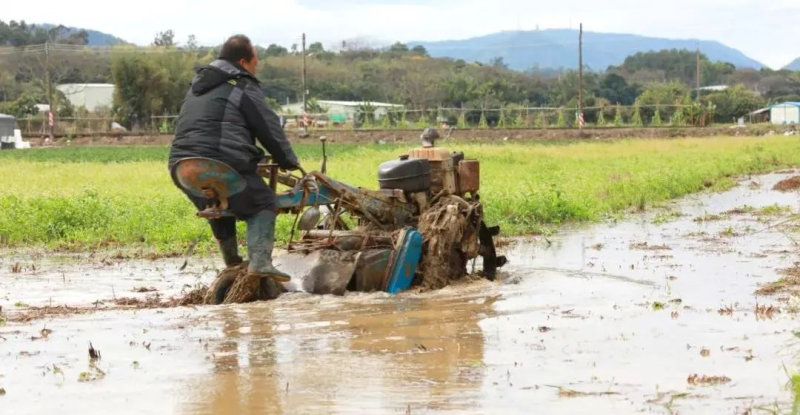 他正抓紧时间耙田、平地