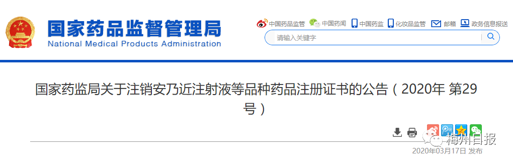 近日,国家药品监督管理局发布《关于注销安乃近注射液等品种药品注册证书的公告》(2020年第29号)和《关于修订安乃近相关品种说明书的公告》(2020年第34号),停止安乃近注射液等品种在我国的生产、销售和使用,注销药品注册证书,对安乃近片等品种修订说明书。