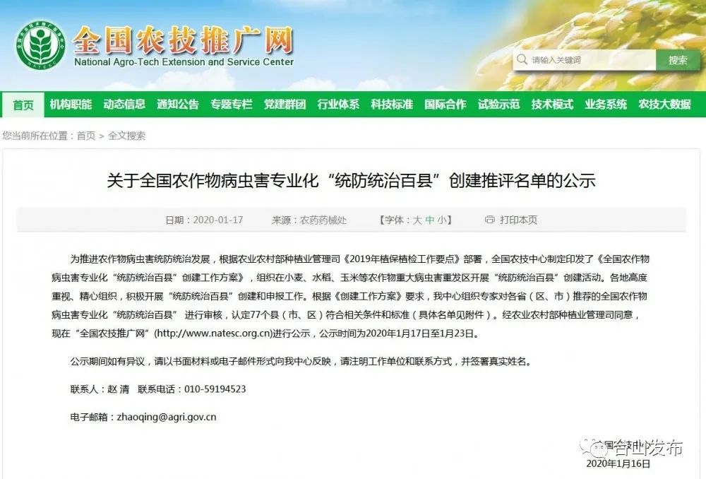 近日,中国农业技术推广中心发布了全国农作物病虫害专业化“统防统治百县”创建推评名单,台山位列其中。