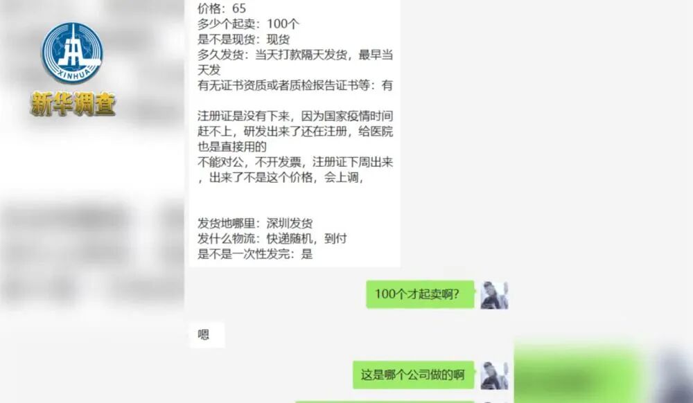 根据我国相关规定,此类产品上市销售需有医疗器械注册证。面对记者询问,该微商称,试剂盒的注册证“没有下来”,因为“疫情突发时间赶不上,试剂盒研发出来后仍在注册,当前供给医院也是直接用的”。他还向记者保证,该款试剂盒有质检报告证书,但并未向记者出示。