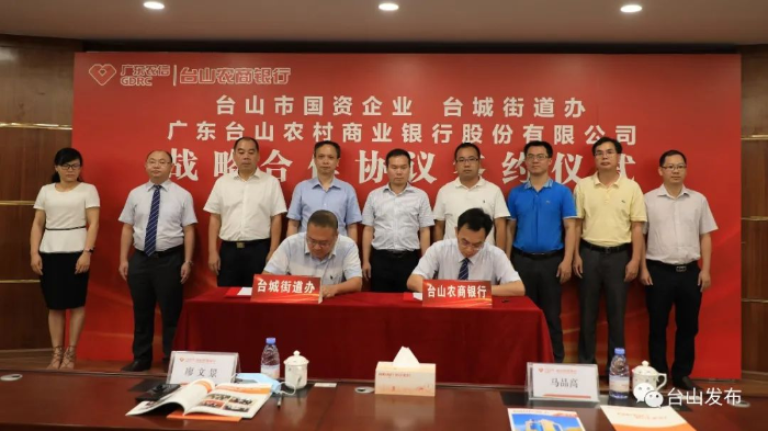 为搭建政银企合作交流平台,推动台山市经济高质量发展,打造良好的金融生态环境,5月21日下午,台山农商银行与台城街道办、台山国资企业在台山农商银行总行十二楼会议中心签署战略合作协议。市委常委、副市长马品高和台山农商银行党委书记、董事长廖文景等政府、企业代表出席签约仪式。