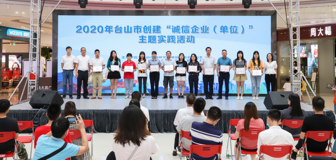 为进一步推进诚信建设制度化,创建诚信企业和诚信单位,8月3日下午,市文明办、市市监局、市科工商务局、市工商联联合举行主题为“弘扬诚信理念 推动安心消费——2020年台山市诚信企业、诚信单位”主题实践活动。