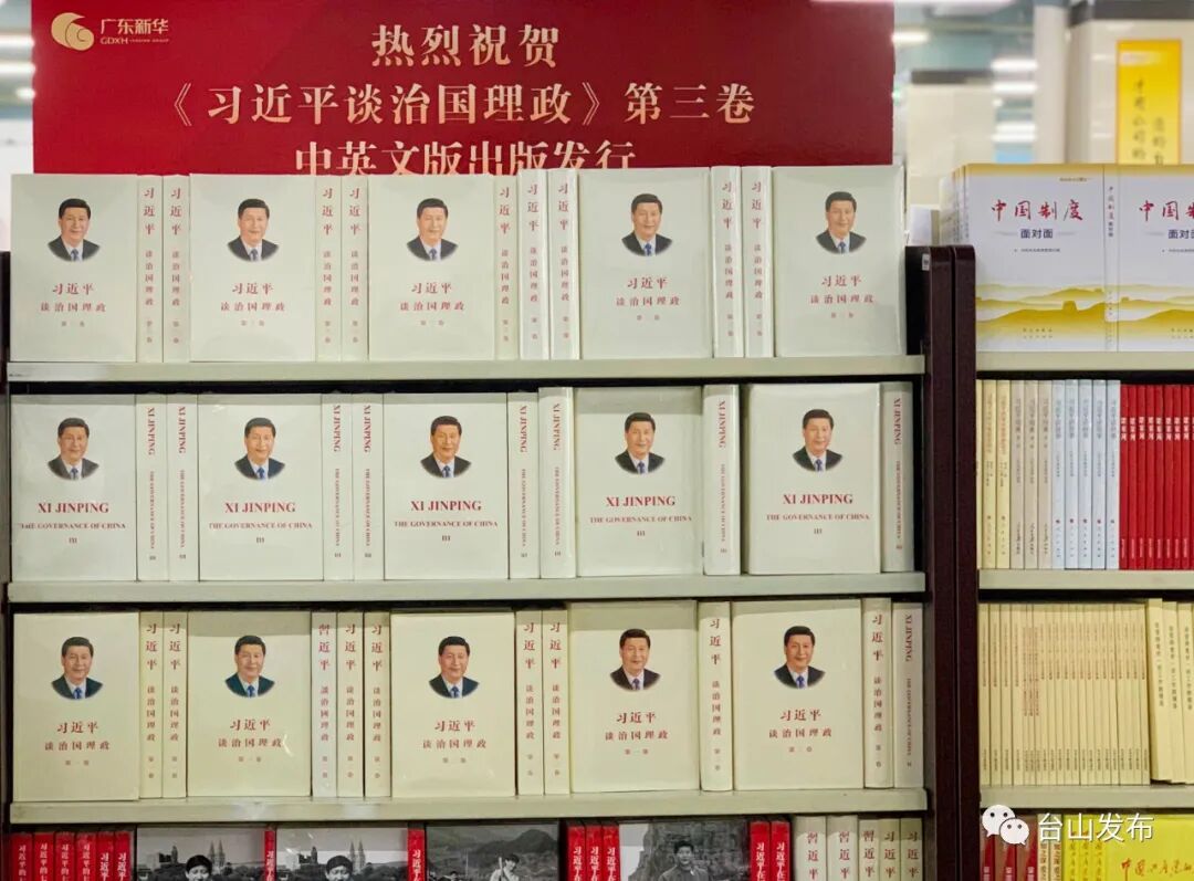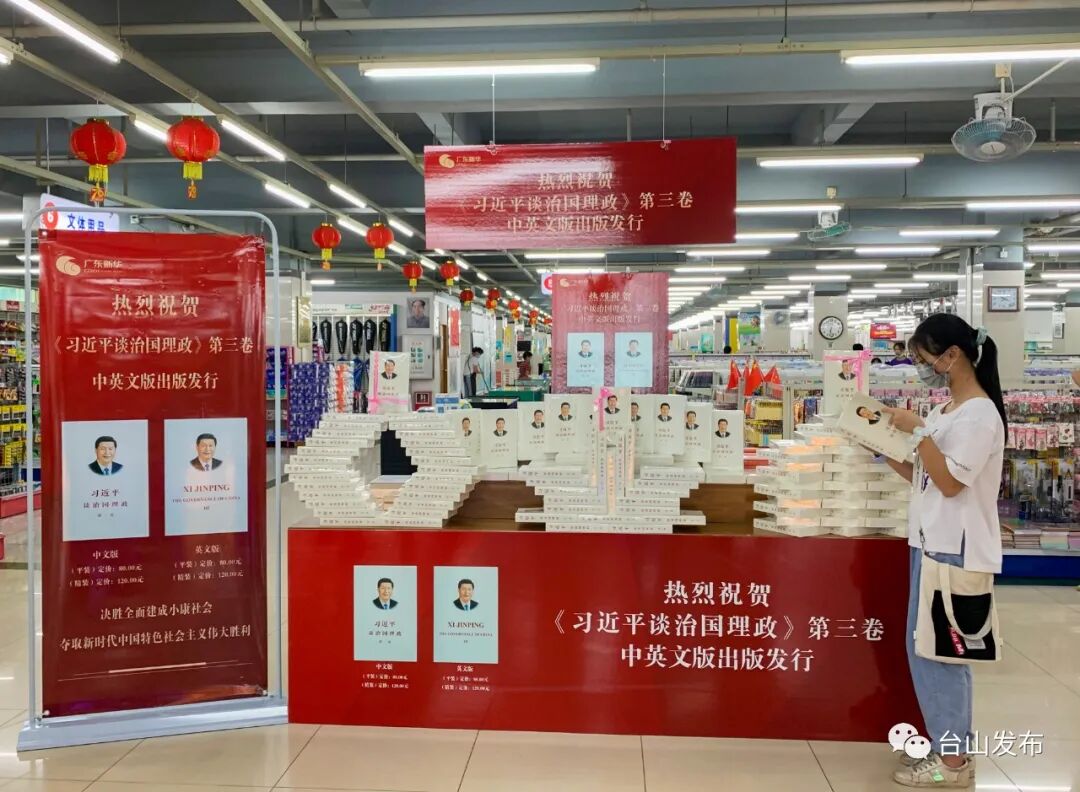 在台山新华书店,琳琅满目的书籍中,《习近平谈治国理政》第三卷摆放在店堂最重要、最显眼的位置,吸引了不少读者过来翻阅、选购。