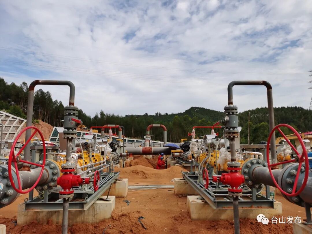 粤西天然气主干管网阳江-江门干线项目是广东省天然气主干管网的重要组成部分,也是2020年省重点工程项目之一,总长约170公里,其中台山段约31公里。为节省用地,项目规划部分线路与中开高速重叠,其中台山段大部分都沿着中开高速公路旁边建设。台山段沿线在大江镇文林村设置1座站场,在台城街道三社村设置1座阀室,主要接收阳江LNG来气。在台山分输站经过计量、调压后送往下游用户,已建的3路分输口最大输量可达到15.12亿方/年,同时预留了另外3路分输预留口。