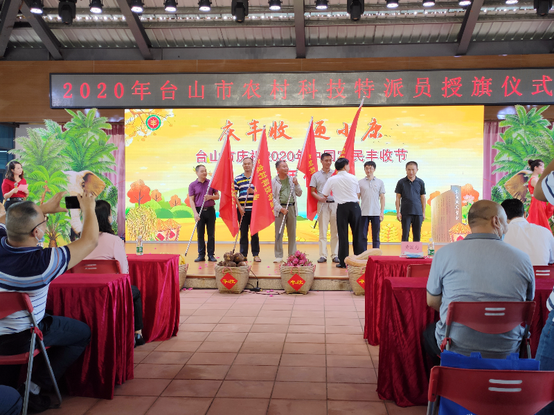 市领导在致辞时表示,举办丰收节活动,目的是全方位展示我市科技强农新成果、产业发展新成就、乡村振兴新面貌。活动现场还为冲蒌镇李权生、北陡镇朱伟立、广海镇梁绍锵、海宴镇陈耀权、深井镇陈金文5位2019年度优秀农技员进行颁奖,并举行了优秀农村科技特派员授旗仪式。