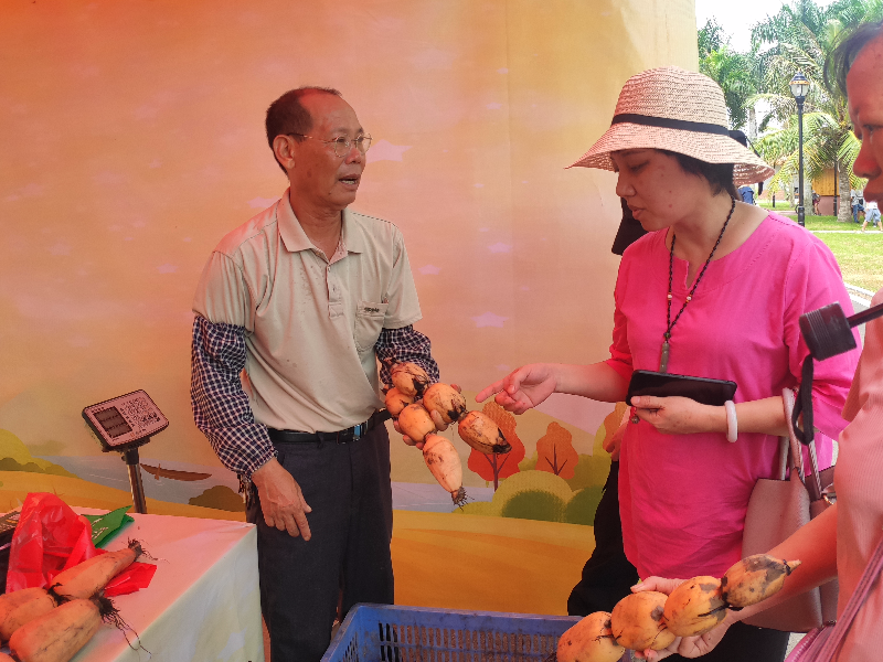 北陡镇下洞村第一书记雷源聪表示,他们带来了下洞的沙地五彩番薯套餐和荔枝酒,希望借这次机会推广产品,达到帮助当地村民、农民增产增收。