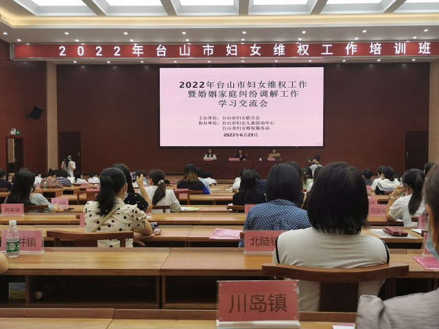 为提高我市妇女干部自身素质,进一步完善矛盾纠纷多元化解机制,切实维护好妇女儿童合法权益,2022年台山市妇女维权工作暨婚姻家庭纠纷调解工作学习交流会6月29日下午在市委党校举行。