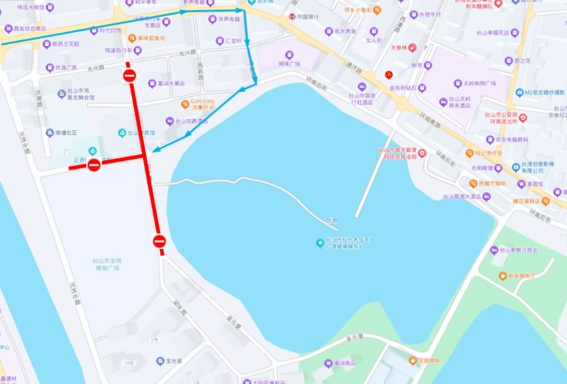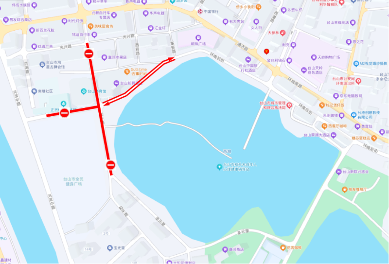 为确保第十五届全国运动会顺利进行,保障赛事活动期间道路交通安全畅通有序,根据《中华人民共和国道路交通安全法》《广东省道路交通安全条例》等法律法规,决定于2025年11月4日至2025年11月20日全天对以下路段实施交通管制措施。具体如下: 一、台山体育馆周边道路 (一)交通管制路段及方式 1.环南后街(台城一小与正贤体育馆交叉口至和平路)双向全封闭(100m),禁止赛事外车辆通行。 2.和平路(光兴路至和平一巷)双向全封闭(330m),禁止赛事外车辆通行。 3.环南后街(和平路至革新路)调整为双向通行(180m)。 (二)建议绕行路线 需要进入台山铂爵酒店的车辆,建议绕行通济路→革新路→环南后街→台山铂爵酒店 (三)建议车辆停放地点 由于台山体育馆周边停车资源紧张,赛事期间园林酒店停车场将对外开放,建议前来观赛的群众将车辆停放在园林酒店后,步行前往台山体育馆观赛。 二、台山新宁体育馆周边道路 (一)南安路(金星大道至德政路)北往南靠新宁体育馆最右侧车道封闭(535米)。 (二)德政路(南安路至陈宜禧路)西往东靠新宁体育馆最右侧车道封闭(494米)。 (三)金星大道(陈宜禧路至南安路)东往西靠新宁体育馆最右侧车道封闭(535米)。 上述车道封闭用做新宁体育馆社会车辆临时停车场,其余车道均可正常通行。 台山市文化广电旅游体育局 台山市公安局交通管理大队 2025年10月30日